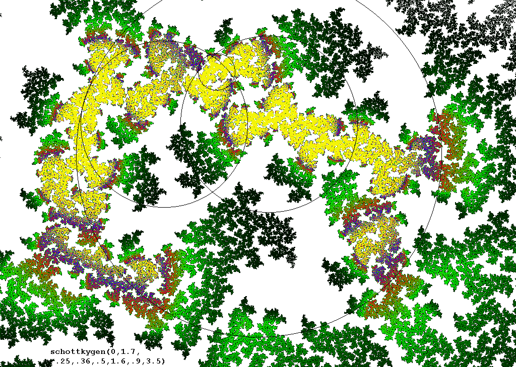 - a Schottky group with 4 generating circles shown